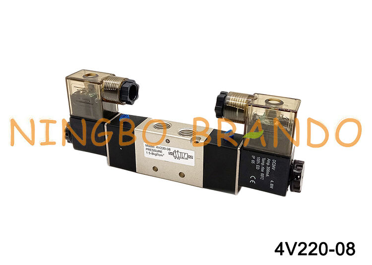 4V220-08 Solenoid Air Valve 2 Positions 5 Way DC24V 12V AC220V AC110V